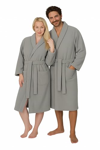 Dressing Gown for Women & Men | Towelling Bathrobe for Adults with Belt, Pockets & Shawl Collar | Women's Dry Robes & Men’s Nightwear | 100% Luxury Cotton, Warm, Soft & Cozy Loungewear (Grey-S/M)