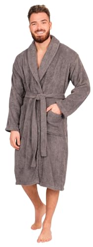 Adore Home Mens 100% Cotton Bathrobe Terry Towelling Shawl Collar Bath Robe Dressing Gown, Slate, L