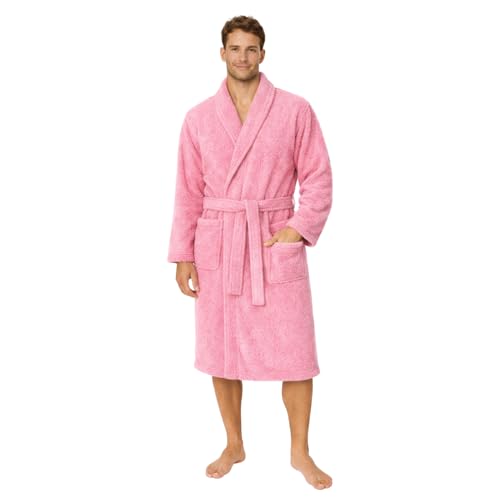 Dressing Gown for Women & Men | Towelling Bathrobe for Adults with Belt, Pockets & Shawl Collar | Women's Dry Style Robes & Men’s Nightwear | 100% Cotton, Warm, Soft & Cozy Loungewear (Pinke-L/XL)
