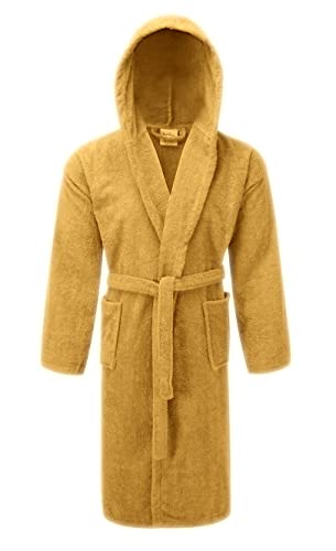 A & B TRADERS Mens Womens Hooded Bathrobe 100% Soft Cotton Terry Towelling Dressing Gown House Coat (Mustard)