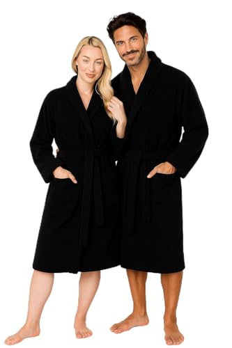 Dressing Gown for Women & Men 2 Pack | Towelling Bathrobe for Adults with Belt, Pockets & Shawl Collar | Women's Dry Robes & Men’s Nightwear | 100% Cotton, Warm, Soft & Cozy Loungewear (Black-L/XL)