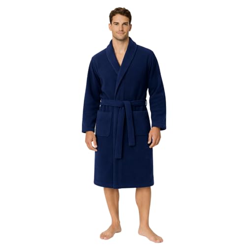Dressing Gown for Women & Men | Towelling Bathrobe for Adults with Belt, Pockets & Shawl Collar | Women's Dry Style Robes & Men’s Nightwear | 100% Cotton, Warm, Soft & Cozy Loungewear (Navy-S/M)
