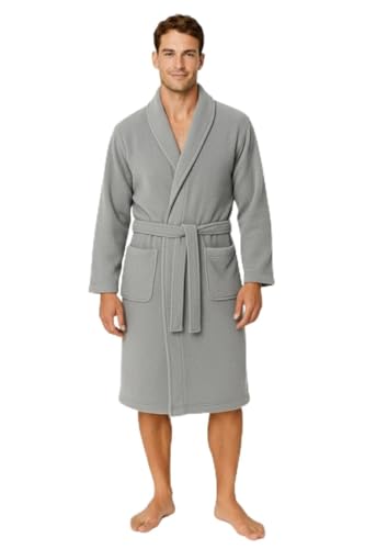 Adore Home Mens 100% Cotton Bathrobe Terry Towelling Shawl Collar Bath Robe Dressing Gown, Slate, M