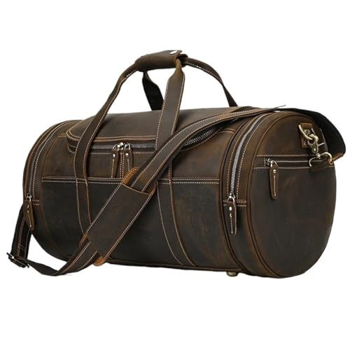 Duffel Bags for Men Men's Travel Bag Genuine Leather Luggage Bag for Men Vintage Travelling Duffel Cowhide Leather Weekend Large Men Bags(Brown)