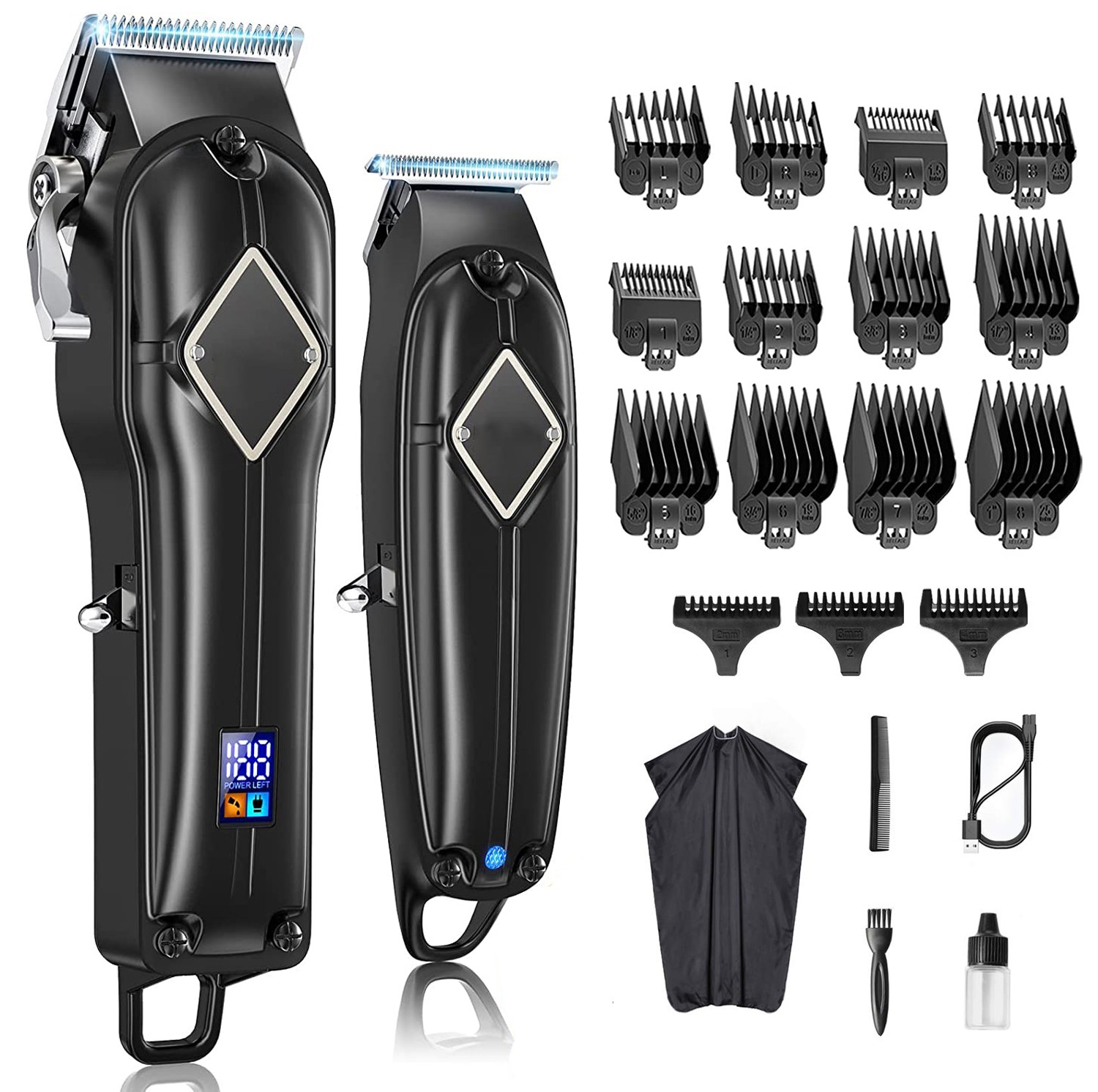 Barber Clippers Set, Cordless Mens Hair Clippers Rechargeable Beard Trimmers Kit, Black