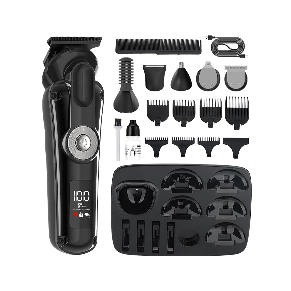 Men's Hair Trimmers, Rechargeable Grooming Kit Lithium-ion Battery, High-speed Motor Non-slip Surface Design, Smart Led Display Zero Gapped T-blade F