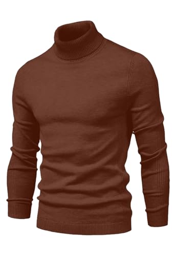 MLANM Mens Turtleneck Jumpers Casual Winter Slim Fit Solid Color Sweater Warm Turtleneck Pullover Jumper Caramel XXL