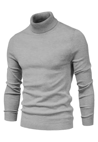 Bahob® Mens Turtleneck Slim Fit Mens Jumper Cotton Ribbed High Neck Pullover Sweater Knitwear (M, Grey)