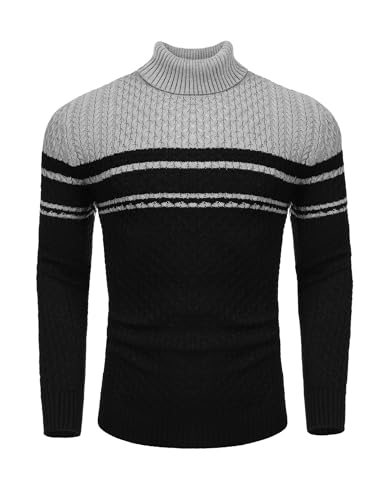 Coofandy Mens Jumpers Turtleneck Slim Fit Twisted Knitted Pullover Jumpers , Black, M