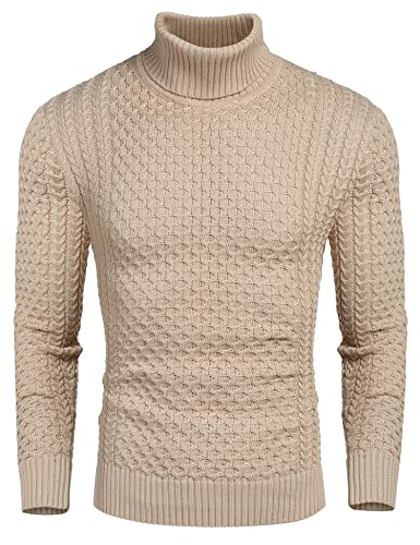 COOFANDY Mens Turtleneck Sweater Casual Roll Neck Jumper Turtle Neck Tops Slim Fit Sweatshirts Knit Sweater Warm Turtleneck Pullover Winter Jumper Apricot M