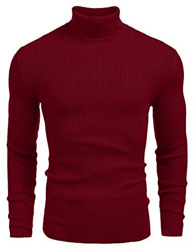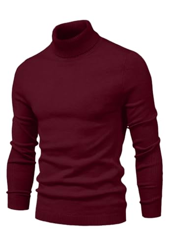 COOFANDY Mens Turtleneck Jumper Fine Knit Pullover Elegant Regular Fit Winter Knitwear Sweater Wine Red L