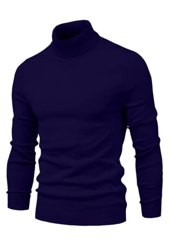 KUYIGO Mens Turtleneck Long Sleeve Ribbed Knitted Casual Tops Mens Slim Fit Cotton Turtle Neck Pullover Shirts S Navy