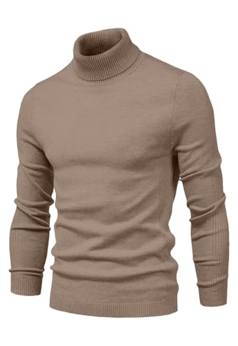 COOFANDY Mens Turtleneck Jumper Winter Warm Casual Knitted Roll Neck Solid Long Sleeve Ribbed Sweater Khaki L