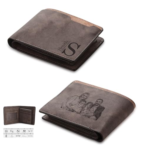 lorajewel Personalized Men's Wallet Leather Wallet Custom Photo Name Initial Gift for Men Father's Day Christmas Valentine's Day (G)