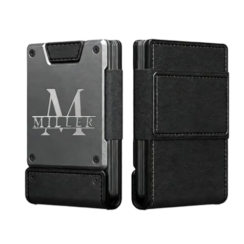 Personalised Mens Card Holder Wallet, Custom Credit Card Holder with Text, Slim Pull Out Wallet for Men with Distressed Leather, Personalized Gift for Father's Day Valentine's Day