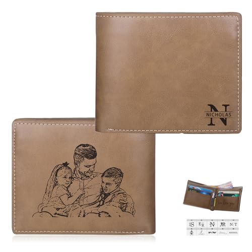 lorajewel Personalized Men's Wallet Leather Wallet Custom Photo Name Initial Gift for Men Father's Day Christmas Valentine's Day (F)