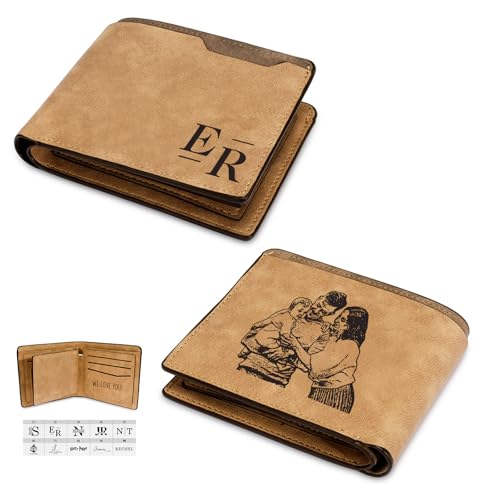 lorajewel Personalized Men's Wallet Leather Wallet Custom Photo Name Initial Gift for Men Father's Day Christmas Valentine's Day (E)