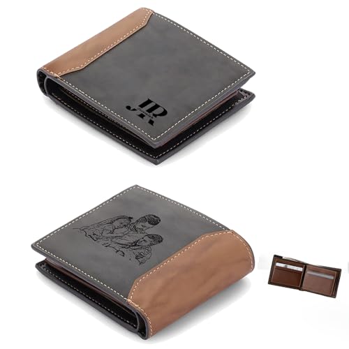 ALBERTBAND Men's Wallets Personalised with Name Letter Photo Leather Wallets for Dad Son Husband Christmas Valentine's Day Father's Day Birthday Gift (J)