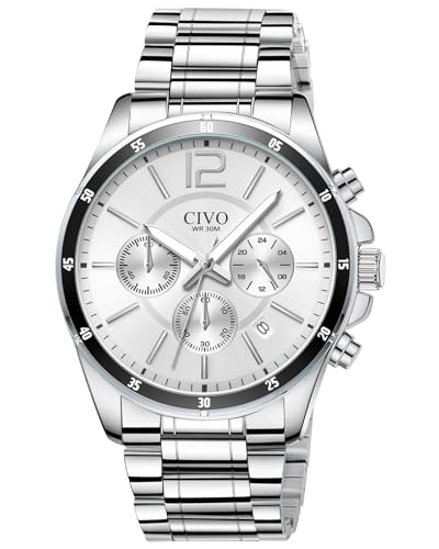 CIVO Gifts for Husband Mens Watches: Stainless Steel Luminous Chronograph with Date Wristwatch - Fashion Designer Business Waterproof Anniversary Valentine's Gift