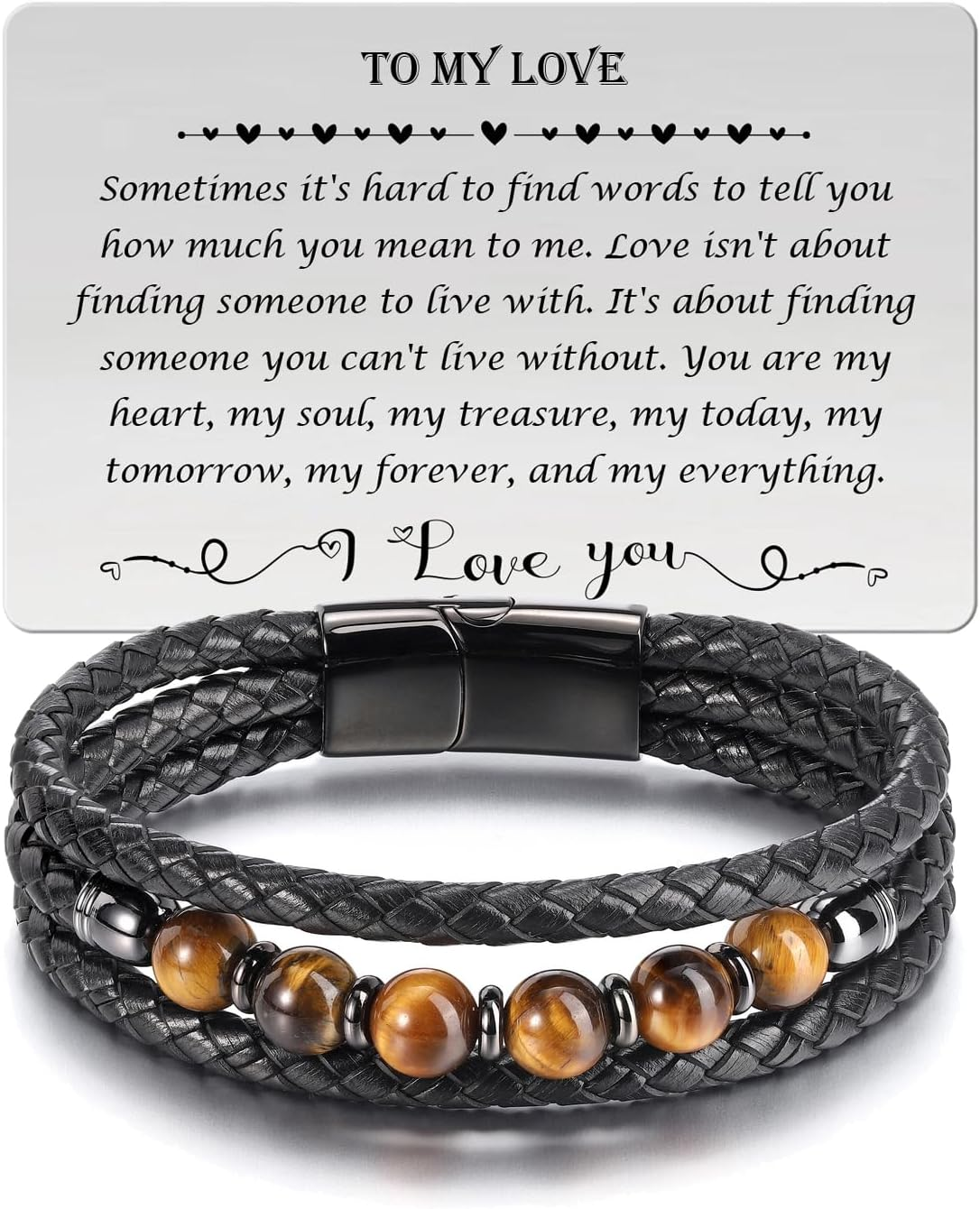 FLHEART Men's Bracelets Gifts for Men - Brown Braided Leather Infinity Knot Bracelet Engraved Letter Love You Forever for Soulmate, Mens Bracelets Gift for Birthday Valentine's Day Anniversary