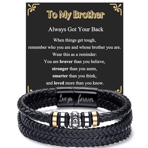 BMMYE Big Brother Gifts Mens Leather Bracelets Personalised Men's Bracelets Cool Bracelet Gift for Brothers Brother Bracelet Birthday Valentine's Day Father's Day Christmas Gifts
