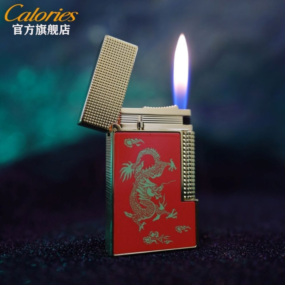 (Red Dragon) Card Road Refillable Langsheng Zodiac Dragon Lighter Side Slide Brass Gift For Men's Husband Valentine's Day Gift