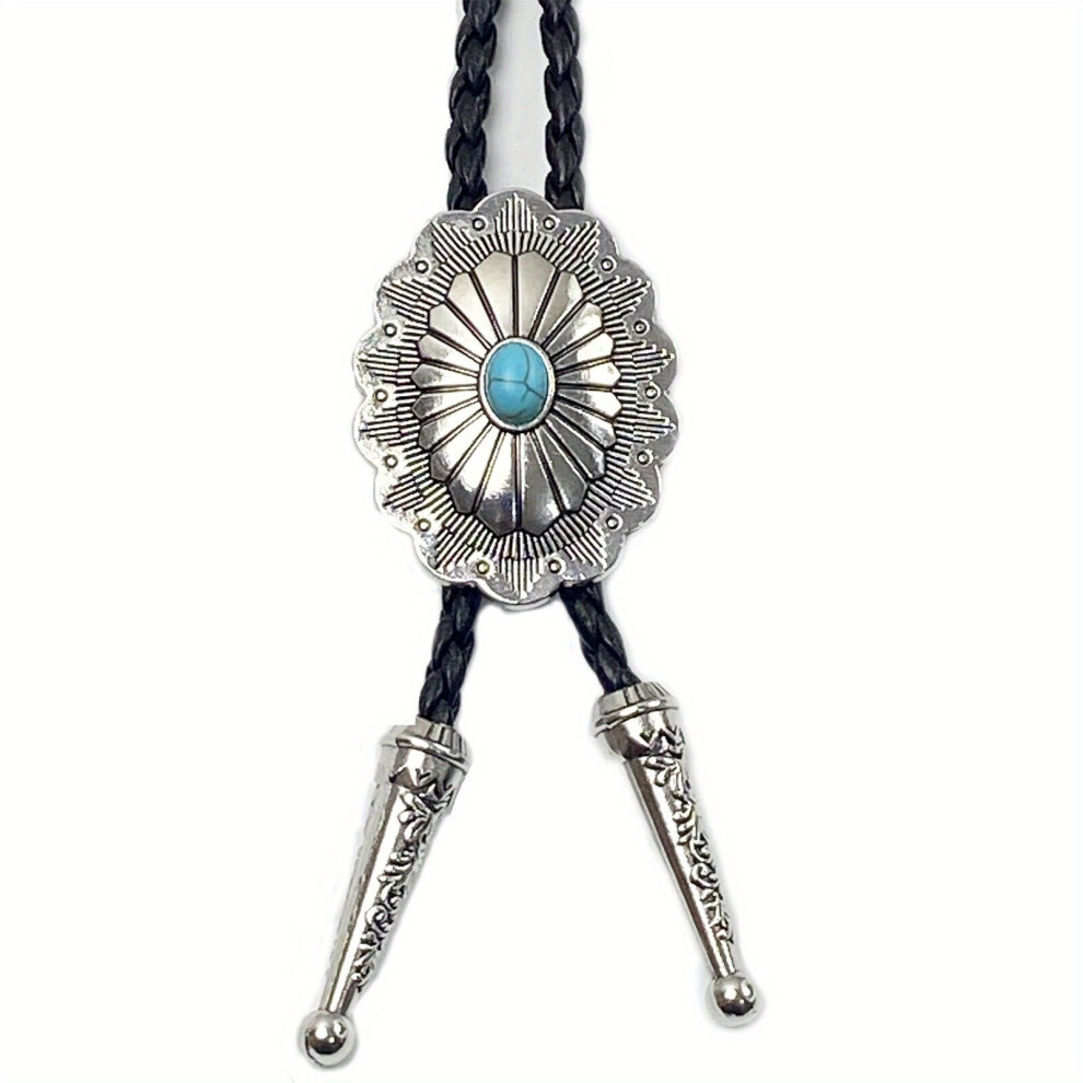 1pc Bolo Tie Vintage Turquoise Stone Bolo Tie Retro Mens Necktie Cowboy Accessories Leather Tie For Cowboy Costume And Gift Choice For Valentine And C