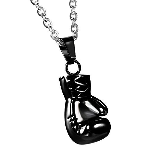 JewelryWe Birthday Valentine Gift Stainless Steel Mens Boxing Glove Pendant Necklace with 22 Inch Chain, Black (with Gift Bag)