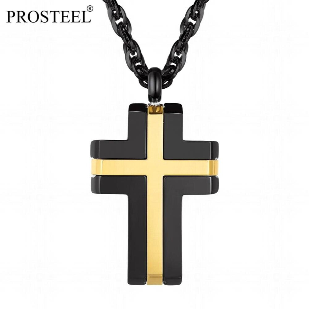Cross Pendants Necklaces 18K Plated Two-Tone Stainless Steel Mens Boys Valentine Christimas Gift for Him