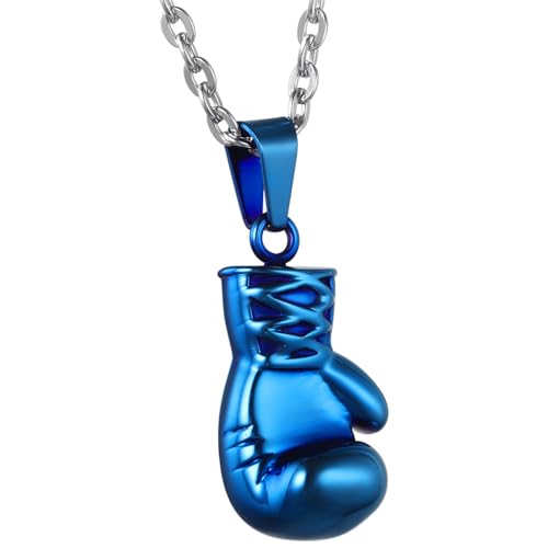 JewelryWe Birthday Valentine Gift Stainless Steel Mens Boxing Glove Pendant Necklace with 22 inch Chain, Blue (with Gift Bag)