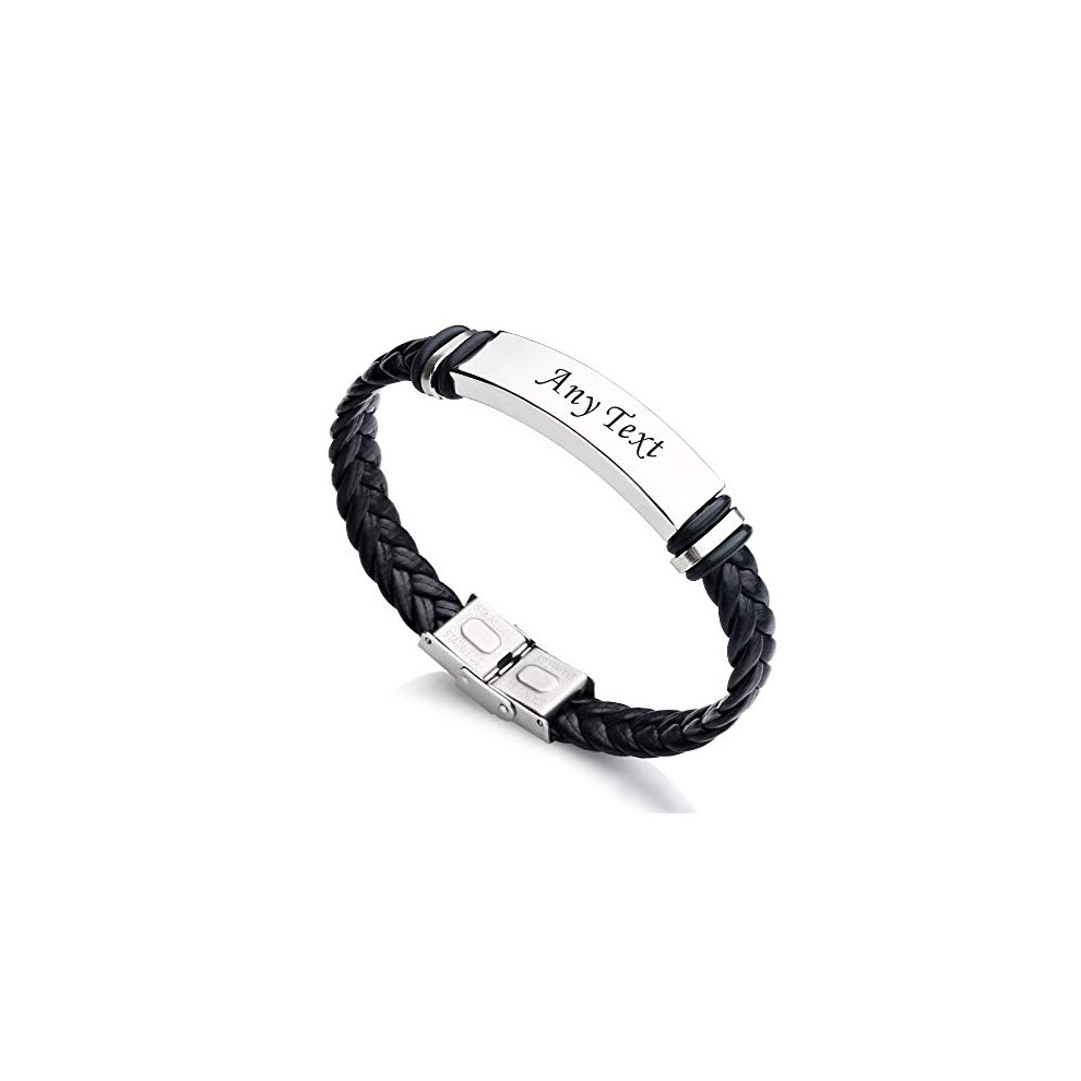 EDSG Personalised Mens Bracelet Engraved Leather Bracelets Gift for Him Customised Valentine, Birthday, Wedding, Christmas, Father's Day Free