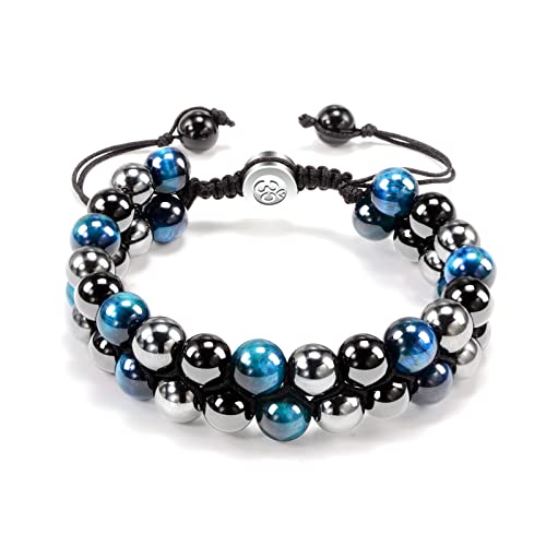 VGWON Mens Crystal Bracelet 8mm Blue Tiger Eye Obsidian Natural Stone Beads Triple Protection Bracelet Christmas Valentine's Day Father's Day Gift to Bring Luck and Prosperity