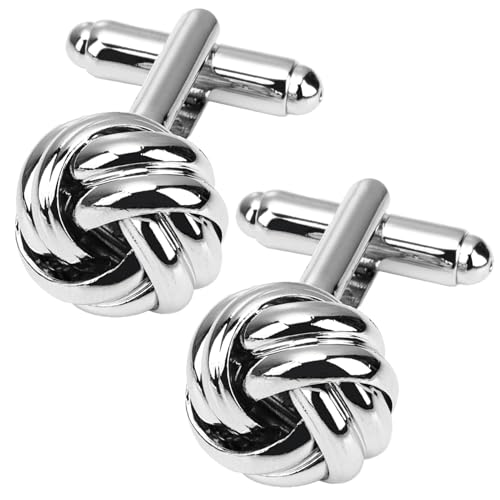 Knot Twisted Cufflinks - Men's Valentine's Day Gift Stainless Steel Classic Tone Cufflinks for Suit Dress Shirt Studs Accessories Wedding Business Graduation Gift, Silv