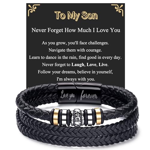 BMMYE Gift for Son Mens Leather Bracelets Birthday Personalised Men's Bracelets Presents Cool Sons Bracelet Gifts from Mum To My Son Bracelet with Box Valentine's Day Father's Day Gifts for Sons Adult