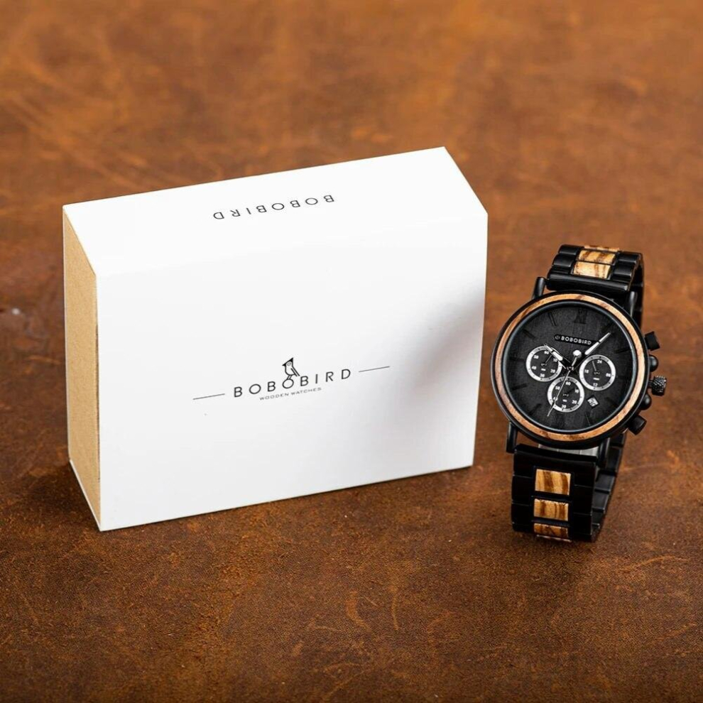 P19 Wooden Mens Quartz Watches Date Display Business Watch Man Ebony Zebrawood Options Valentines Christmas Gift