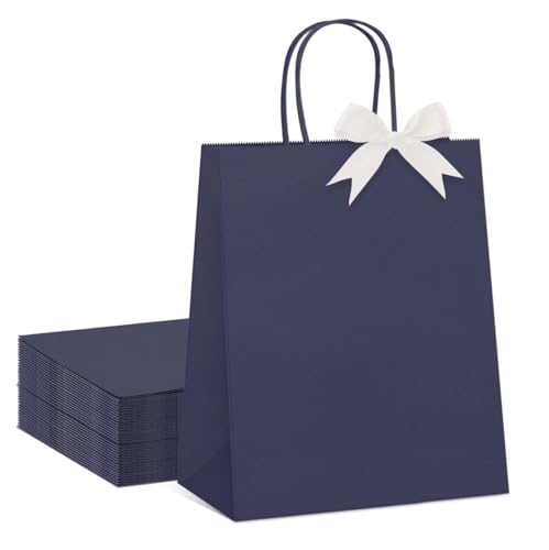 Switory 24 Pcs Gift Bags with Ribbon, Dark Blue Paper Bag with Twist Handles for Mens, Small Kraft Party Bags for Valentines, Kids Party, Birthday, Wedding, Baby Shower, Retail (21X15X8cm)