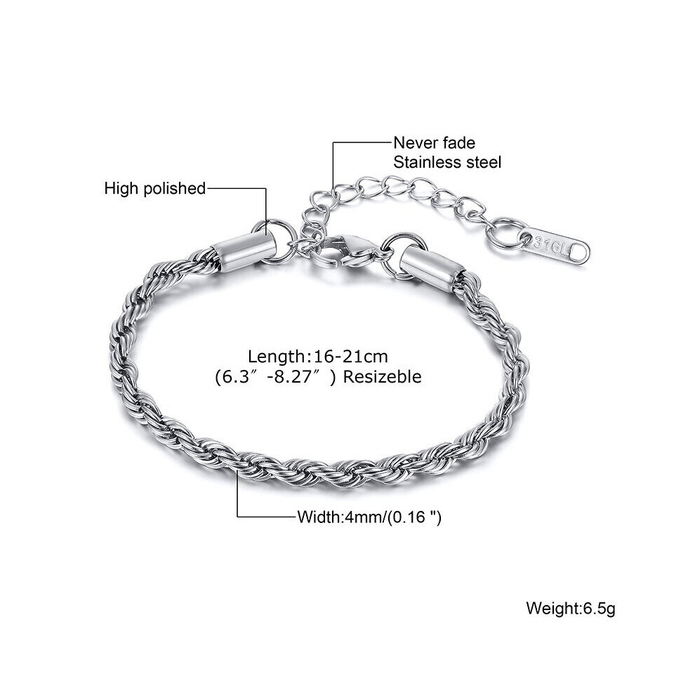 Mens Bracelet Rope Chain, Thin Mens Bracelet Link, Boys Bracelet Men,Valentines Gift For Men, Mens Jewelry