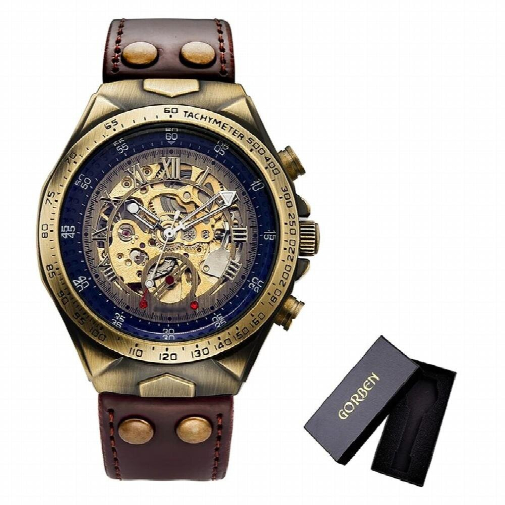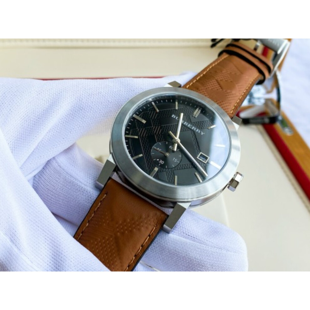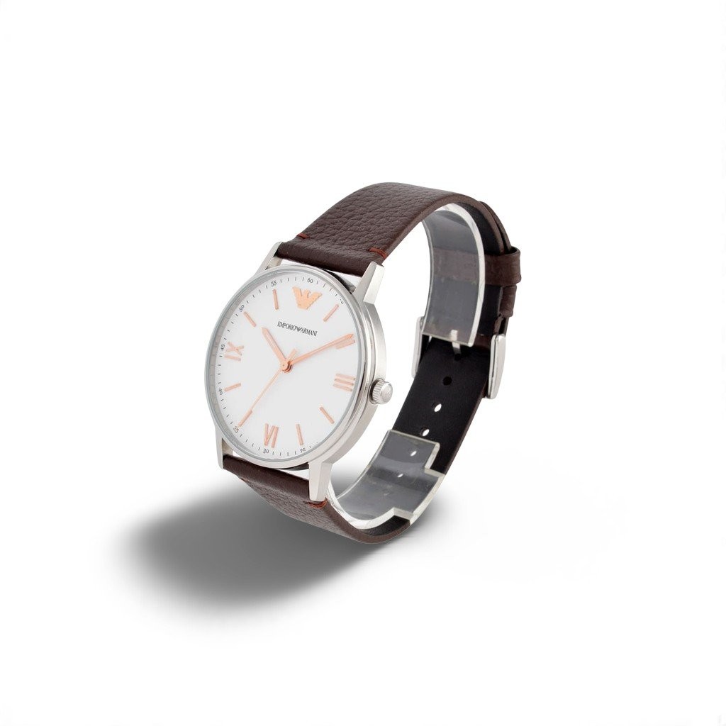 Mens watch brown leather strap