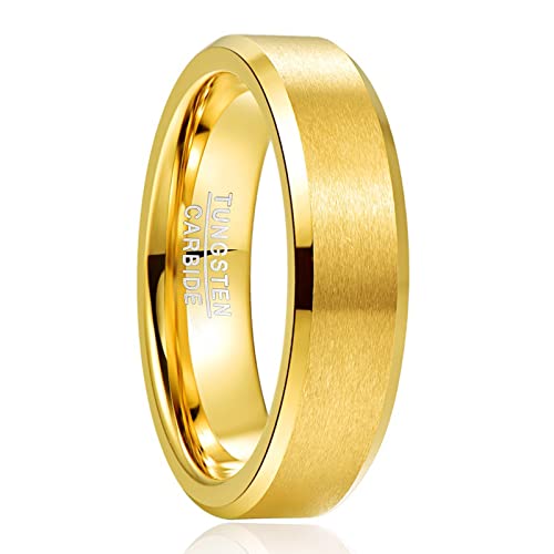 NUNCAD Mens Wedding Ring Gold 6mm Tungsten Carbide Rings for Men Matte Simple Band Ring with Beveled Edges Size S(60mm)