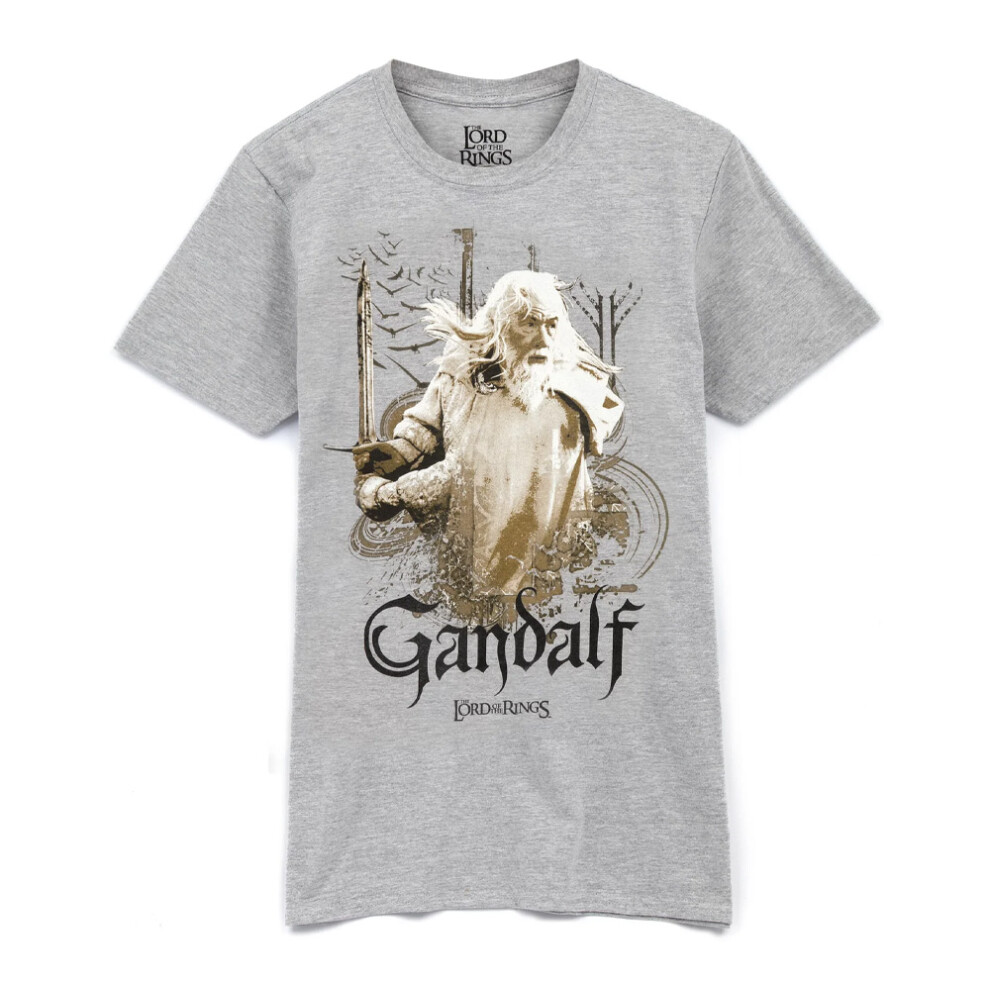 (S, Grey/Dull Gold) The Lord Of The Rings Mens Gandalf Heather T-Shirt