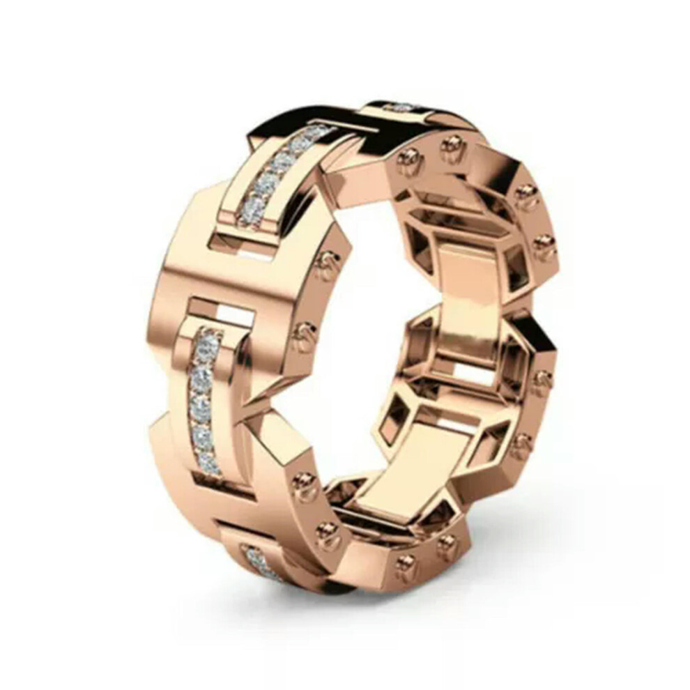RSAMD Fashion Punk Men's Women's Simulated Alloy Copper Finger Rings Wedding Jewelry-Style 9-Rose Gold-8
