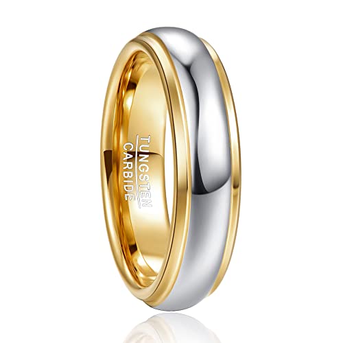 NUNCAD Men's Rings Gold Silver 6mm Wedding Rings His and Hers Simple Tungsten Carbide Couple Ring Two-Tone Mens Wedding Bands with Stepped Edges Size Q1/2(58mm)