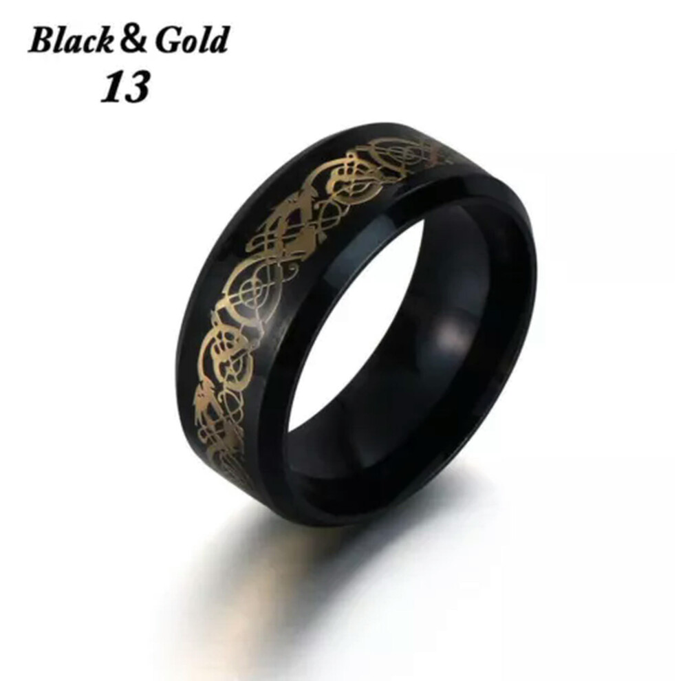 Size 6-13 Stainless Steel Men's Rings Dragon Wedding Band Titanium-black&gold-13