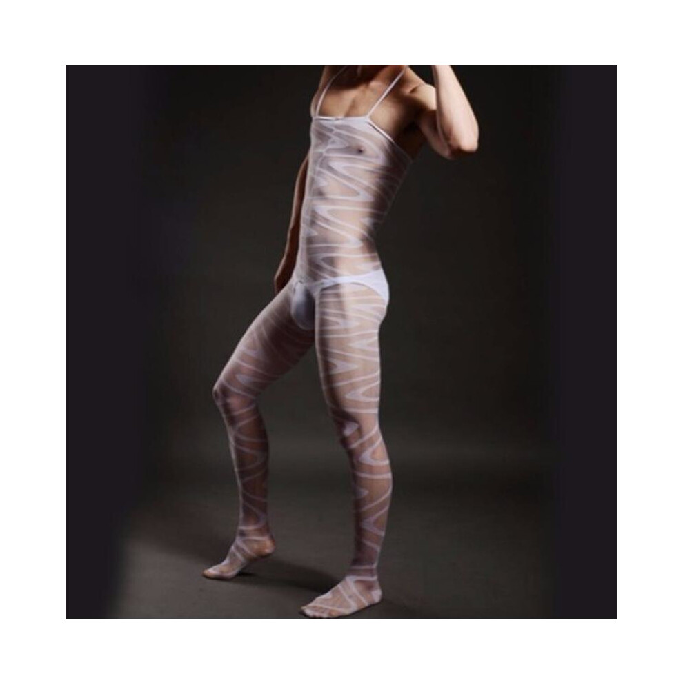 Men\'s open-crotch sexy transparent body silk stockings male full white breathable socks male one piece one piece
