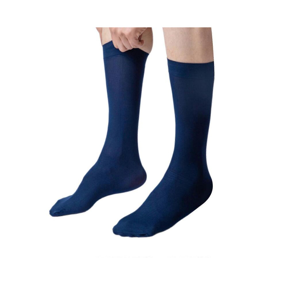 (Navy blue) Men's Casual Office Business Dress Velvet Silk Socks Middle Calf Length Comfortable Breathable Formal Suit Stockings White
