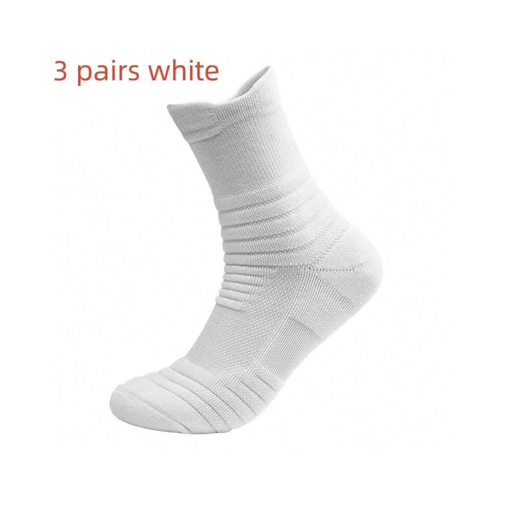 (3 pairs white, US 7-10) 3pairs/Lot Men's Socks Compression Stockings Breathable Basketball Sports Cycling Socks Moisture Wicking High Elastic Tube So