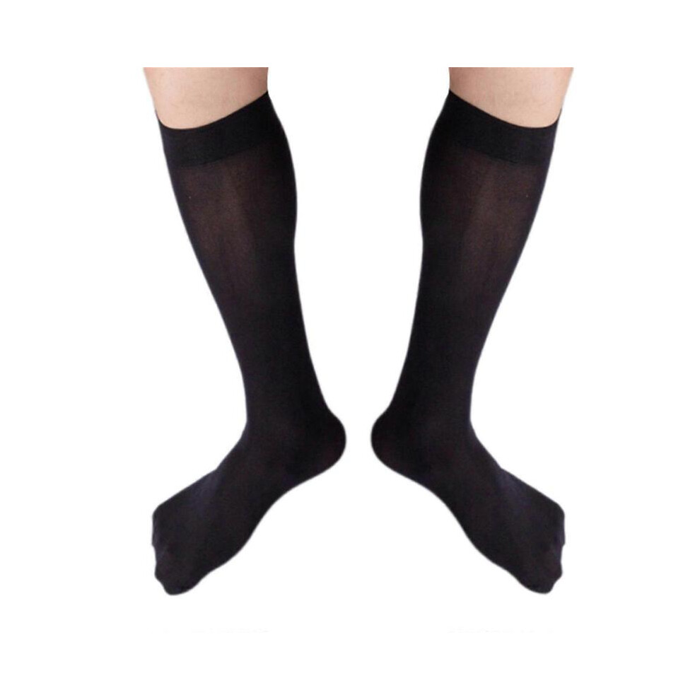 (Black) Men's Casual Office Business Dress Velvet Silk Socks Middle Calf Length Comfortable Breathable Formal Suit Stockings White