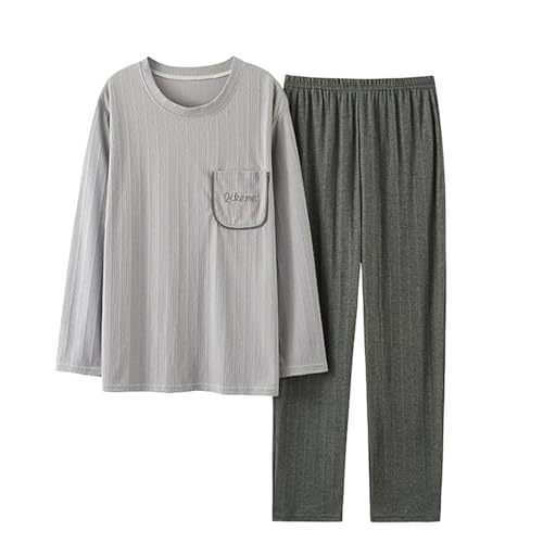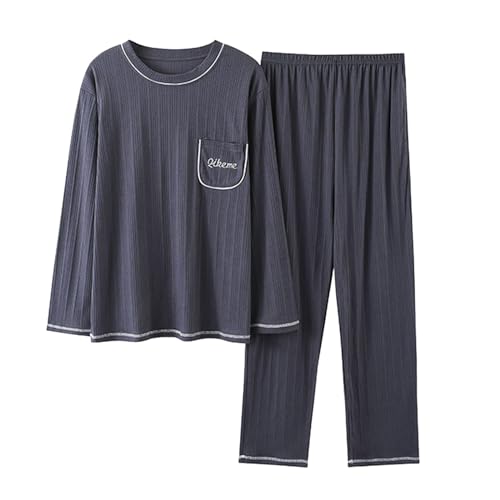 Mens Pyjamas Set Pyjama Bottoms, Warm Winter Autumn Casual Breathable Lounge Pants Tee Top Two Pieces with Elastic Waistband Soft and Comfortable Couple Plain Nightwear Loungewear for Jogging Yoga