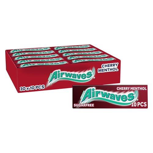 Airwaves Chewing Gum Cherry Menthol, 30 Packs of 10 Pieces, Sugar Free Chewing Gum Bulk Pack with Menthol Freshness (300 pieces)