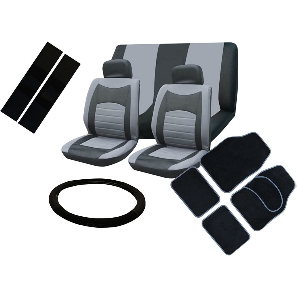 (Grey) Seat Cover Set To Fit Mercedes-Benz A Class With Mats And Wheel Cover